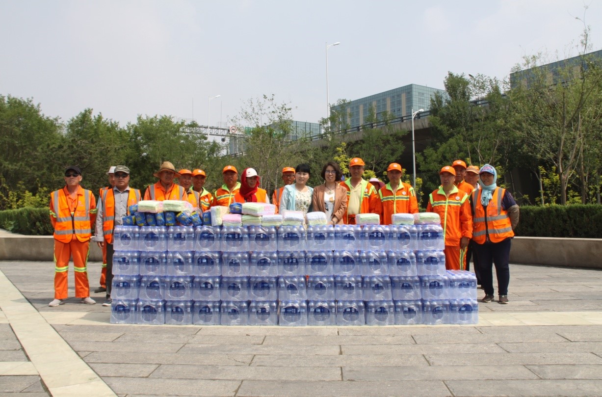 2018年6月12日下午,沈陽防銹向皇姑區(qū)環(huán)衛(wèi)及市水務(wù)集團一線工作者們進行慰問,并捐贈了一批礦泉水、毛巾和工作手套。沈陽防銹總經(jīng)理劉艷霞、皇姑區(qū)首府城管一所所長周雪梅、副所長白冰、市水務(wù)集團施工單位領(lǐng)導(dǎo)共同參加了慰問捐贈活動。
